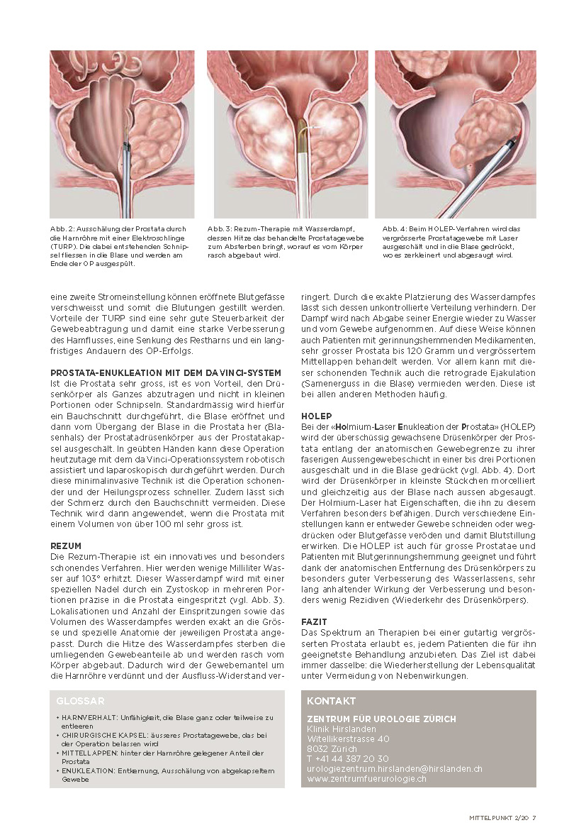 Vereint mit der grossen Erfahrung der Operateure wird so eine ausgezeichnete onkologische Heilung mit sehr guten funktionellen Resultaten erzielt. Dies insbesondere im Hinblick auf Kontinenz und Potenz bei Prostatakrebs. «Weniger Schmerzen und eine schnellere Wundheilung tragen zu einer Verkürzung des Spitalaufenthaltes bei», so Dr. med. Stephan Bauer vom Zentrum für Urologie an der Klinik Hirslanden.